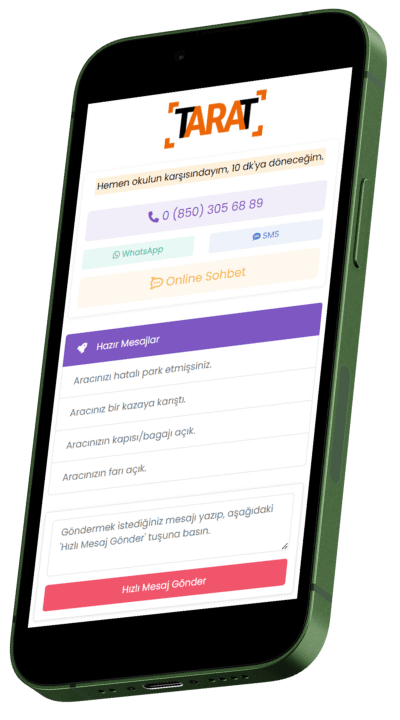 Etikette gizlilik özelliği açık ise, araç başında karekodu okutan kişi sadece mesaj ekranlarını görebilir. İster özel bir mesaj yazabilir, isterse hazır mesajlardan seçebilir. Sisteme ilettiği mesajı biz GSM hattınıza SMS ile iletiyoruz. Böylelikle sizin numaranızı göremiyorlar.